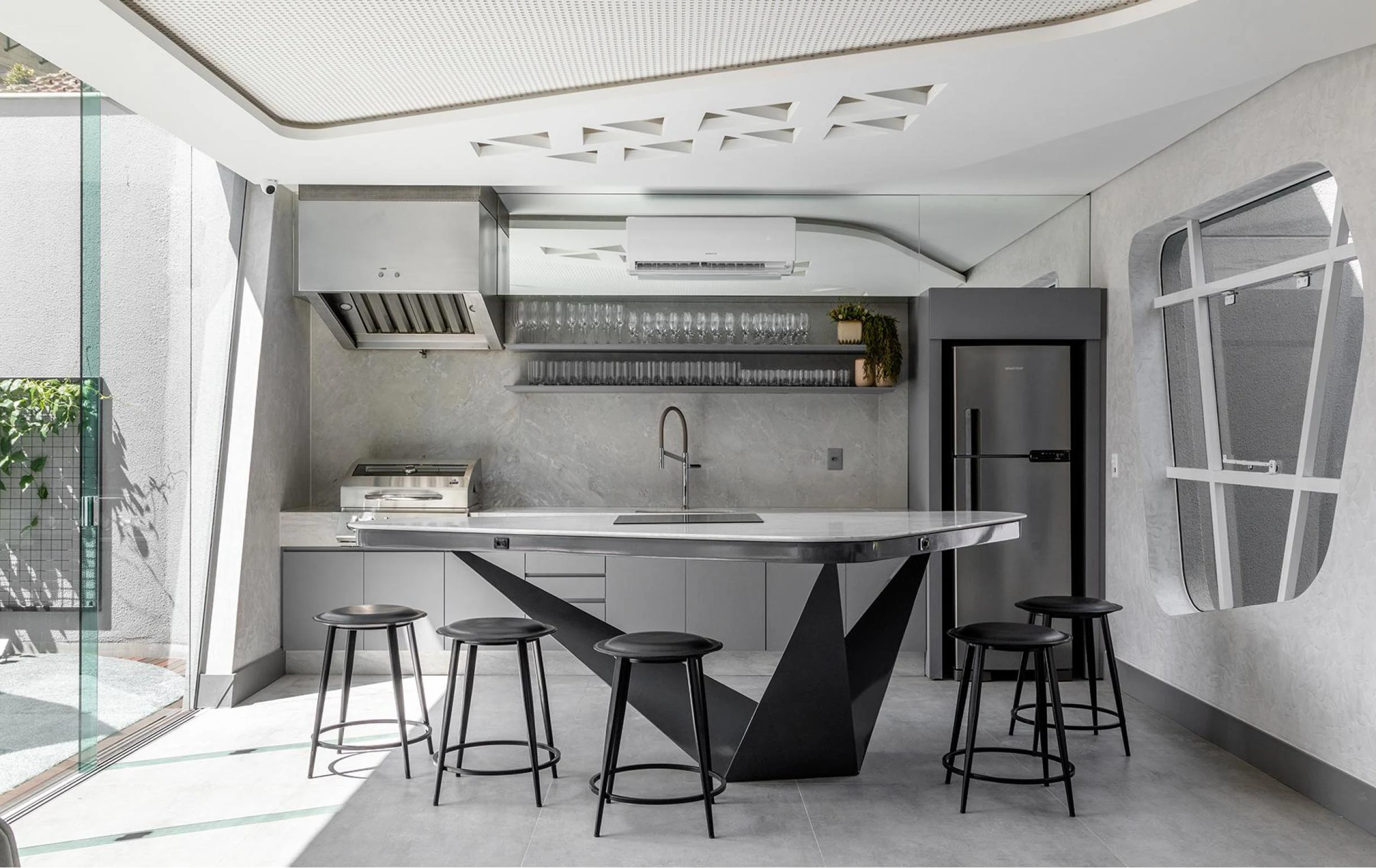Área de lazer completa com um projeto de interiores contemporâneo, cuidadosamente desenhado nos mínimos detalhes.