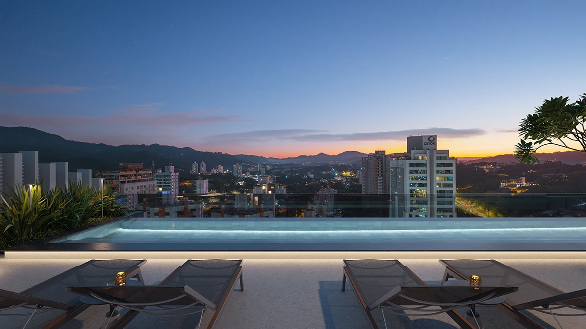 - Projeto e Localização - Um empreendimento completo, com ampla área de lazer, piscina com borda infinita e 2 andares de rooftop. Apartamentos bem iluminados, a poucos metros da Vila Germânica e próximo de todas as conveniências.