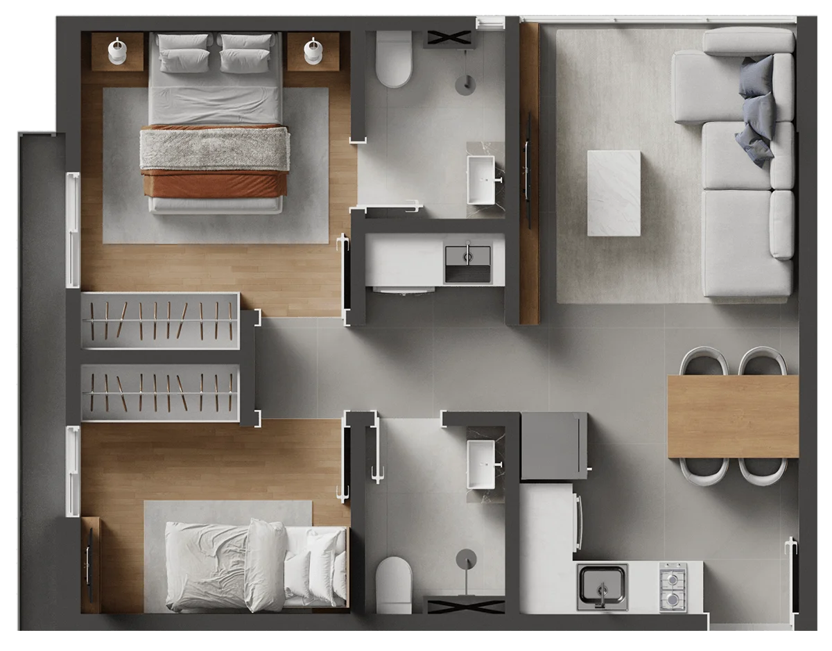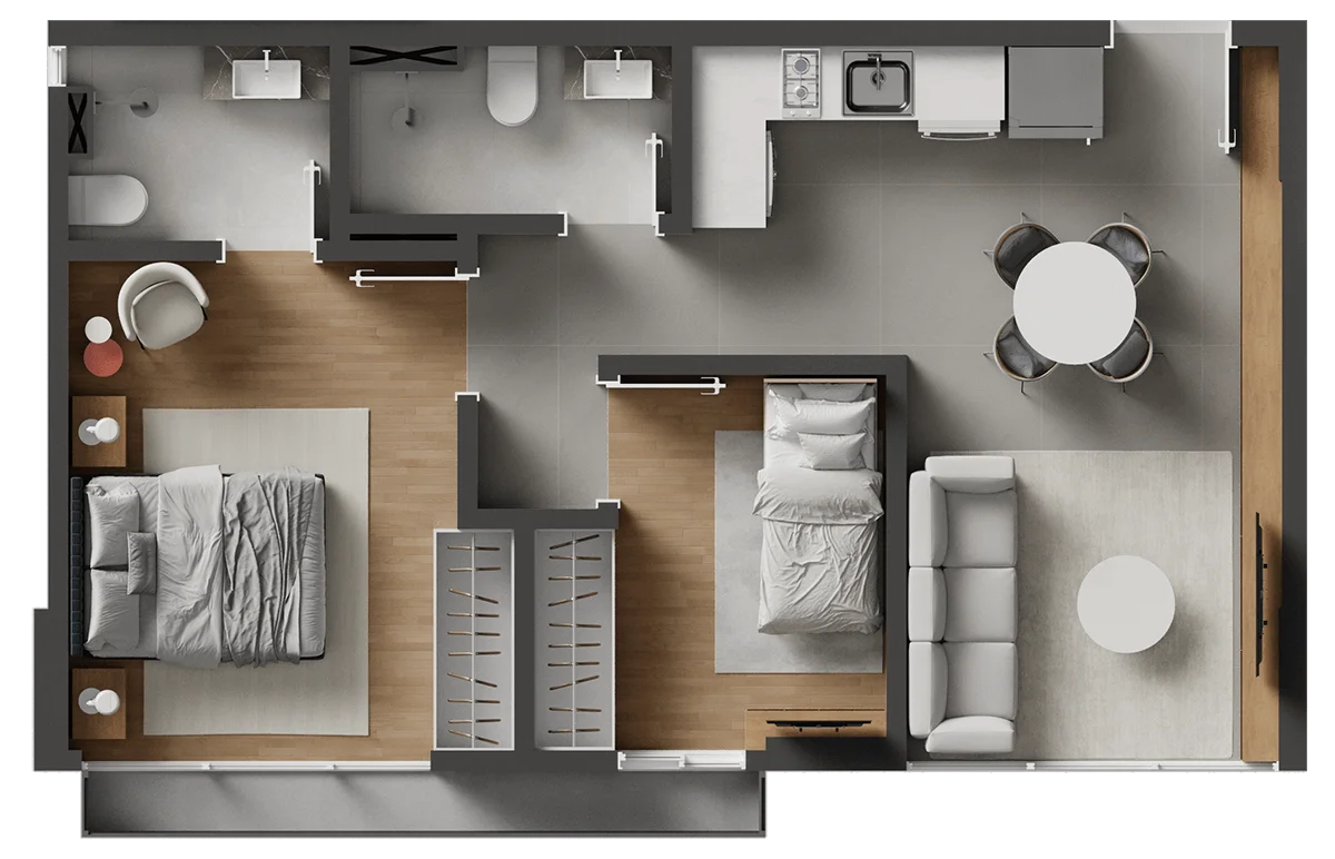 2 dormitórios de alto padrão